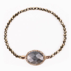 Per realizzare questo bracciale abbiamo utilizzato una pietra naturale sfaccettata in Labradorite grigia rifinita a mano con la brillantezza del micro glitter Bee Bright.